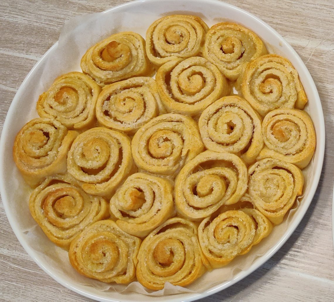 Rullaa taikina pötköksi ja leikkaa se 2 cm:n levyisiksi siivuiksi. Laita siivut pellille tai vuokaan makaamaan kyljelleen mahdollisimman lähelle toisiaan, jotta ne säilyttävät muotonsa.