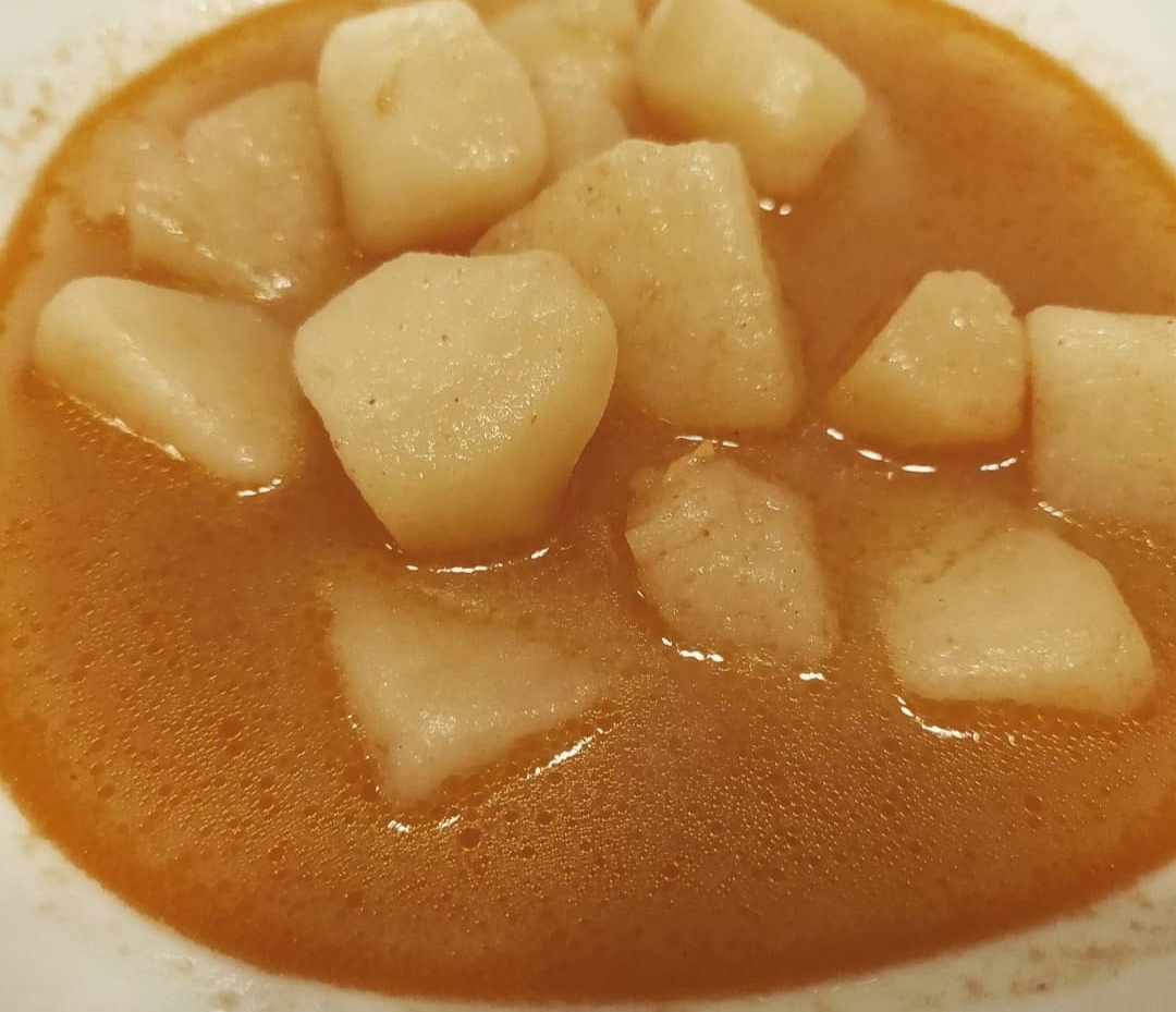Lisää vesi (vettä pitää olla sen verran, että perunat juuri ja juuri peittyvät) ja kiehauta. Maista, että keittovesi on tarpeeksi suolaista ja lisää mausteita tarvittaessa. Anna keiton kiehua, kunnes perunat ovat pehmeitä.