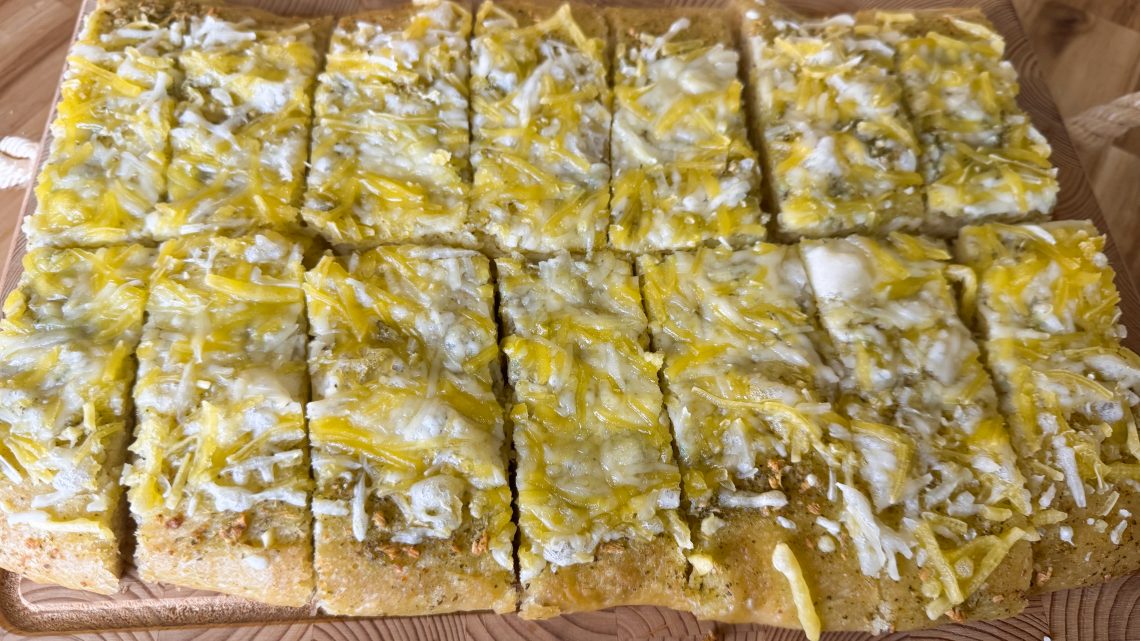 Aamiainen, Leivonta, Reseptit Valkosipulipuikot Taikina500 g jauhoja (n. 9,5 dl)Pussi kuivahiivaa1 rkl sokeria1 rkl suolaa1,35 dl oliiviöljyä4 dl lämmintä vettä Valkosipulisekoitusta varten1 kokonainen valkosipuli1 rkl pestoa3 rkl oliiviöljyä Haluamaasi juustoa raasteena (itse käytin mozzarellaa ja “originalia” sekaisin). TaikinaLaita jauhot, hiiva, sokeri ja suola taikinakoukulla varustetun tehosekoittimen kulhoon ja sekoita hyvin.Lisää öljy ja vesi, ja jatka sekoittamista, kunnes saat tasaisen, yhtenäisen ja hieman tahmean taikinan.Siirrä taikina öljyttyyn kulhoon, peitä pyyhkeellä ja anna kohota tunnin ajan huoneenlämmössä. ValkosipuliseosKuori valkosipuli ja murskaa se valkosipulipuristimella. Lisää öljy ja pesto, ja sekoita hyvin, kunnes saat tasaisen tahnan. Kuumenna uuni 180 asteeseen.Kun taikina on kohonnut, jaa se kahteen yhtä suureen osaan. Kauli kumpikin osa ohueksi suorakulmioksi ja aseta leivinpaperilla vuoratulle pellille. Levitä valkosipulitahna taikinan päälle ja laita se uuniin 6 minuutiksi. Poista uunista 6 minuutin kuluttua, levitä juustoseos taikinan päälle ja palauta uuniin vielä 12 minuutiksi tai kunnes taikina on kullanruskeaa. Leikkaa pizzarullalla “puikoiksi”.