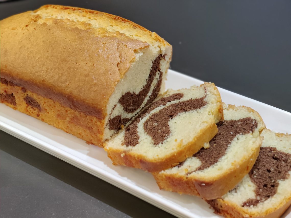 Jaa puolet taikinasta erilliseen kulhoon ja lisää toiseen puolikkaaseen ruokalusikallinen kanelia ja kaakaota.