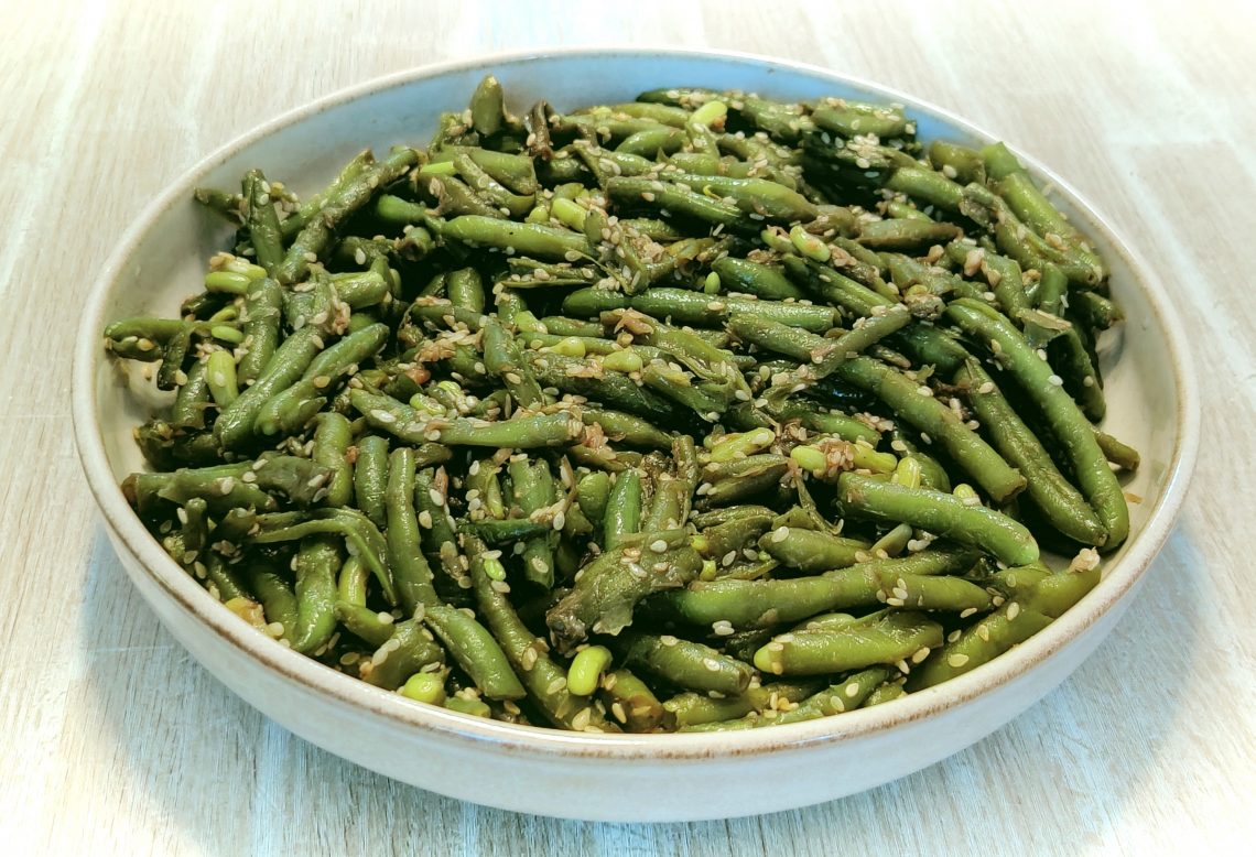Laita vihreät pavut siivilään, pese niitä hieman ja laita sivuun.